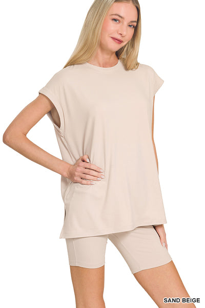 BRUSHED DTY MICROFIBER SLEEVELESS TOP & BIKER SHORTS- BIKER SHORTS- BUTTERY SOFT - PERFECT STRETCH & RECOVERY- 90% POLYESTER 10% SPANDEX